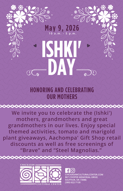 We invite you to celebrate the (Ishki') mothers, grandmothers and great grandmothers in our lives. Enjoy special themed activities, tomato and marigold plant giveaways, Aachompa' Gift Shop retail discounts as well as free screenings of “Brave” and “Steel Magnolias.”