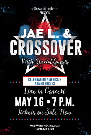 Join us for an unforgettable experience as Jae L. & Crossover and talented special guests pay tribute to the bravery and sacrifice of our Armed Forces. This show will leave you feeling humbled and grateful for their service. Come have a great time with your family and friends, Saturday, May 16 at 7 p.m.!